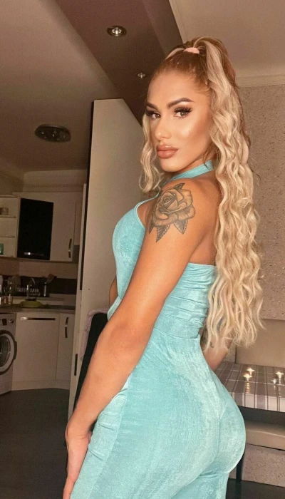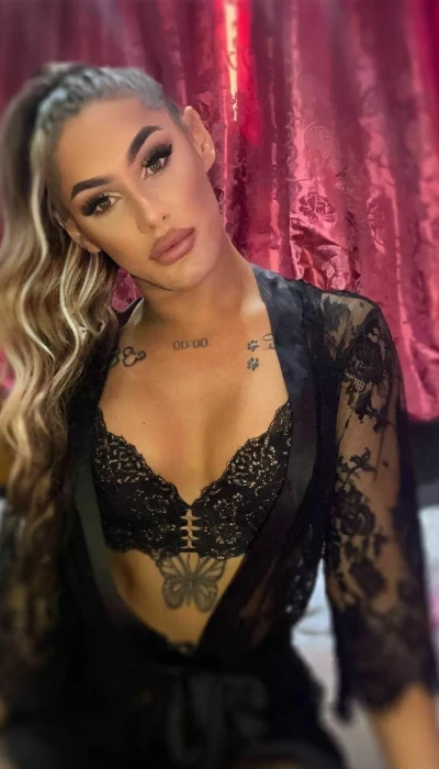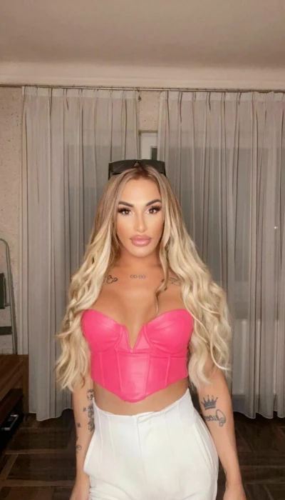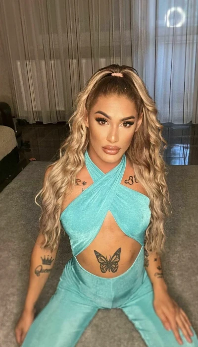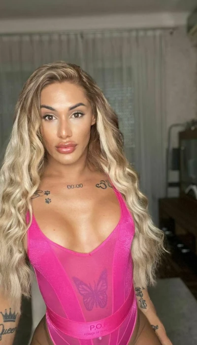 Eine schlanke Trans mit langen Beinen und einem Super Knack Arsch.