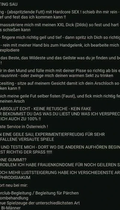 Komm und teste mich - dort wo die anderen aufhören, beginnt bei mir erst richtig Spass!!! Jetzt kannst du endlich erleben, was du nur in einem Pornofilm gesehen hast.