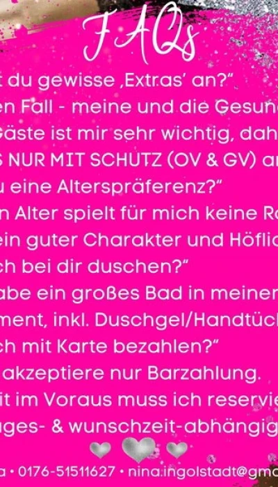 PS: Bitte erwähne bei deiner Kontaktaufnahme, dass du die Anzeige von DEUTSCHE NINA - ab 20.08. wieder da! in Ingolstadt auf gesehen hast!