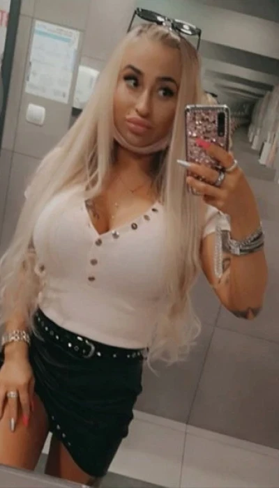 Habe BLONDE lange Haare bis zum PO. BLAUE Augen und volle L*ppen. Ich bin leicht gebräunt, habe Babyweiche Haut und Silikonbrüste in EE. Ich wiege 55Kilo, bin komplett rasiert, 1,67 cm groß und habe einen knackigen Körper in Konfektionsgröße 34-36.