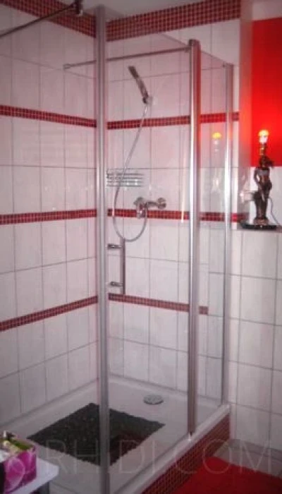 Lass Dir die Augen verbinden, lass Dich entkleiden und lass Dich von unserer Masseurin in unsere geräumige Luxus-Dusche entführen, wo sie Dich ganz in Schaum-Träume hüllt und in duftend-dampfender Umgebung Deinen Lingam massiert!